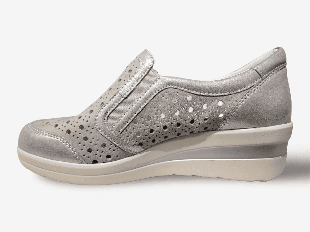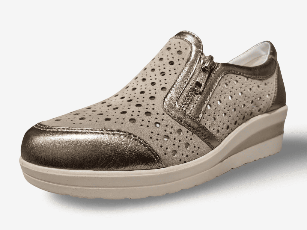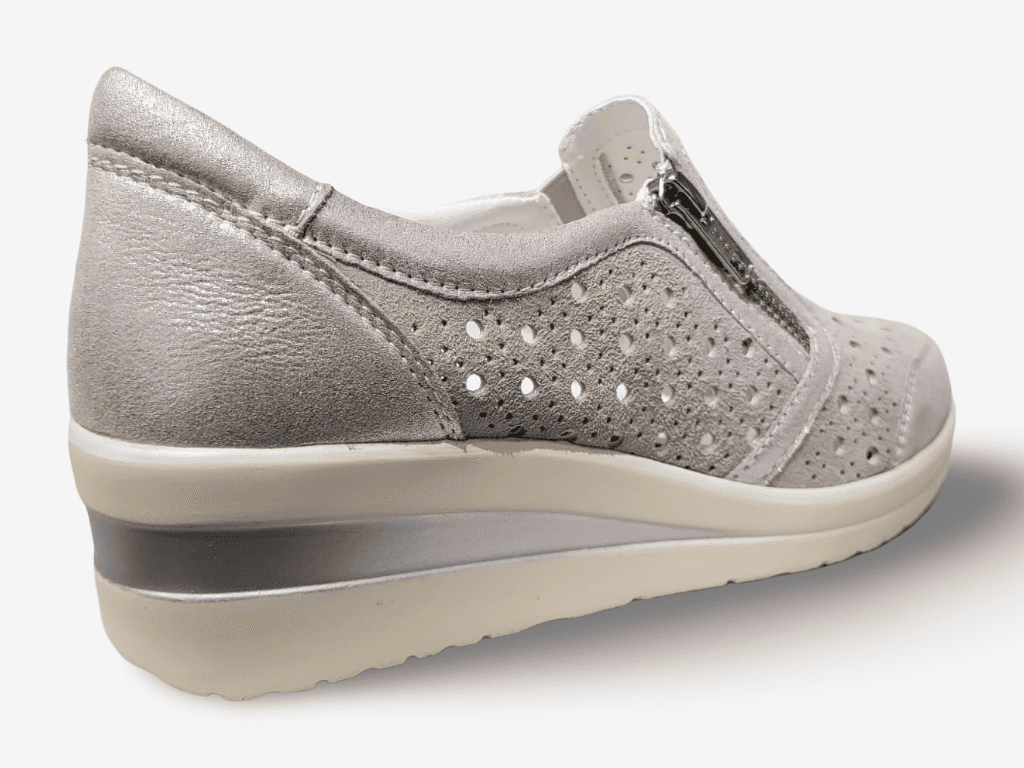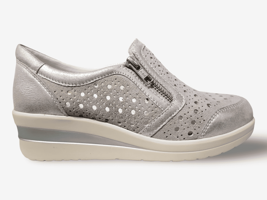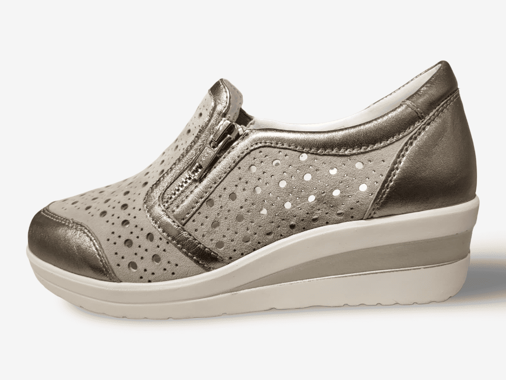 Bluerose sneaker da donna modello 10434, una sneaker da donna con tomaia in vera pelle e camoscio pregiato. Una calzatura slip on con elastici laterali e zip per facilitare la calzata con fondo in gomma morbida 4cm e sottopiede interno in vera pelle. L'ideale per qualsiasi donna che ama la comodità e lo stile casual.